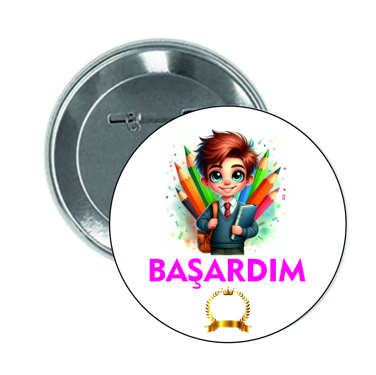 BAŞARDIM ROZETİ, başarı ve motivasyonu sembolize eden özel bir rozet türüdür. Herhangi bir başarıyı kutlamak veya motive etmek için mükemmel bir seçenektir. Bu rozet, başarılı ve pozitif bir tutumun simgesi olarak takım elbiselerde, ceketlerde, çantaların ve hatta saç aksesuarlarında kullanılabilir.
