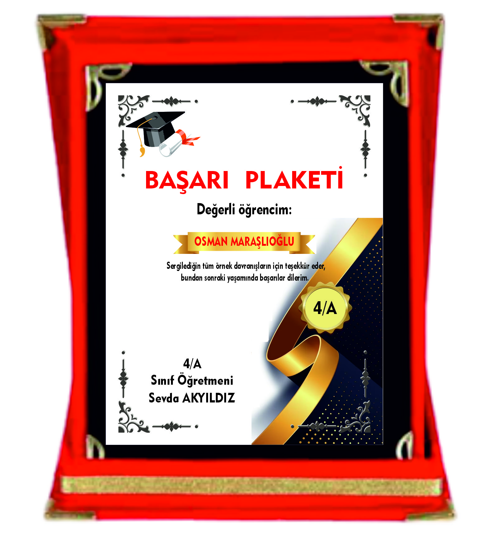 BAŞARI PLAKETİ KİŞİYE ÖZEL TASARLANARAK GÖNDERİM YAPILMAKTADIR