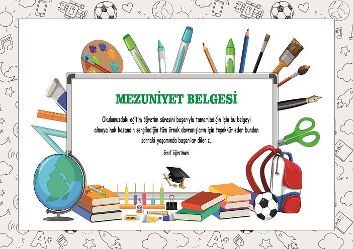 Mezuniyet Belgeleri Mezuniyet Belgeleri kişiye özel tasarımda yapılabilir.İsteğe bağlı.Başarı belgesi,Mezuniyet belgesi ve Okuma belgesi ( Artık Okuyorum Belgesi ) gibi belgelerimiz mevcuttur. Mezuniyet belgeleriyle öğrencilerinizin yıllarca saklayacağı öğrencilerinize hoş bir anı bırakın.