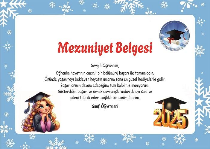 Mezuniyet Belgeleri  Mezuniyet Belgeleri kişiye özel tasarımda yapılabilir.İsteğe bağlı.Başarı belgesi,Mezuniyet belgesi ve Okuma belgesi ( Artık Okuyorum Belgesi )  gibi belgelerimiz mevcuttur.  Mezuniyet belgeleriyle öğrencilerinizin yıllarca saklayacağı öğrencilerinize hoş bir anı bırakın.